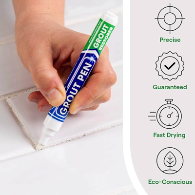 For restoring old and discoloured grout in the bathroom, kitchen, garden and office.