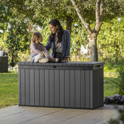 A perfect choice for your outdoor space, the A perfect choice for your outdoor space, the Darwin Deck Box combines an ultra-strong build with an elegant design. This sturdy outdoor deck box is made of innovative EVOTECH™ material which is weather-resistant, UV protected, and features a rustic wood like texture and a stylish dual tone.