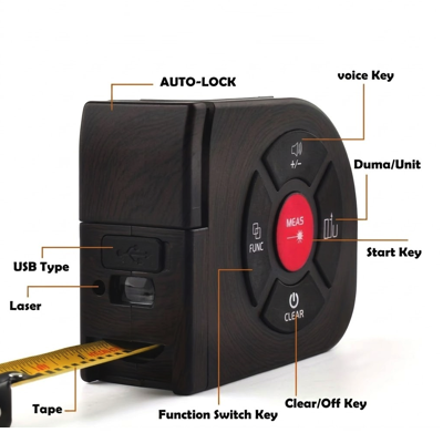 LAICETL LAICAL DTM-T2-50 USB RECHARGEABLE 50M LASER MEASURING TAPE