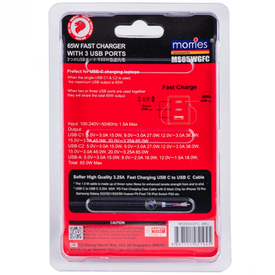 Morries 65W GAN FAST CHARGE With 3 USB Ports MS65WGFC