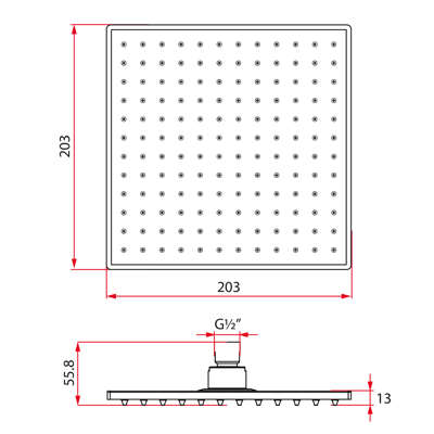 Rubine RRS-NOVA SQUARE Overhead Rain Shower Rose